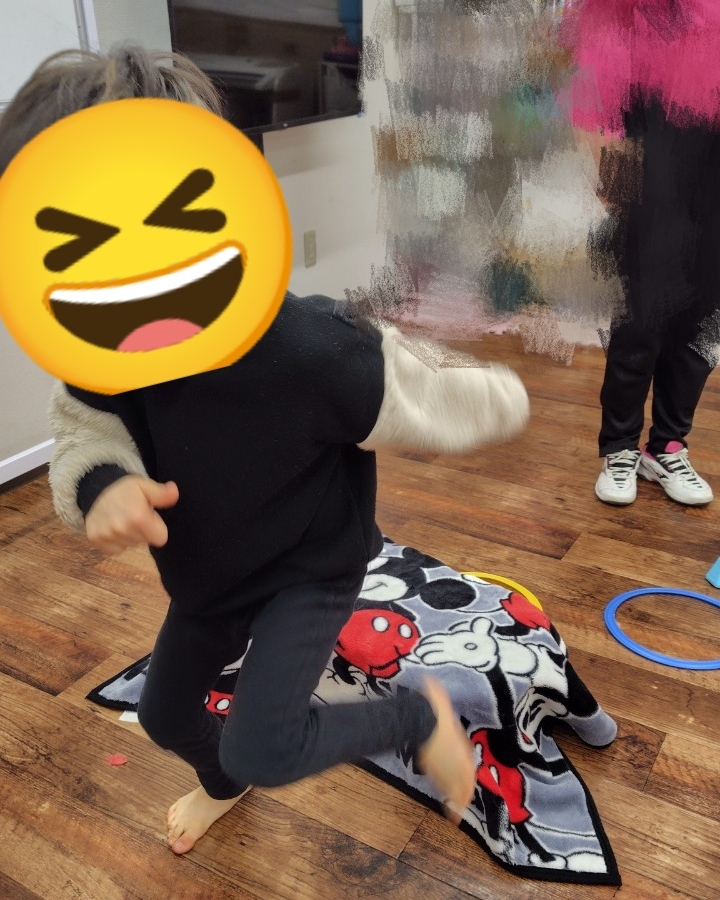 梓川教室では、伝統遊びに触れ、集団で遊ぶ楽しさを味わうということを目的に、『福笑い』をしました🌟