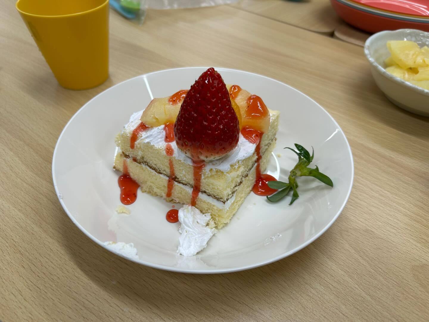 「ここにいちごをのせようかな」「もっとクリームを!」と楽しそうな声が広がり、