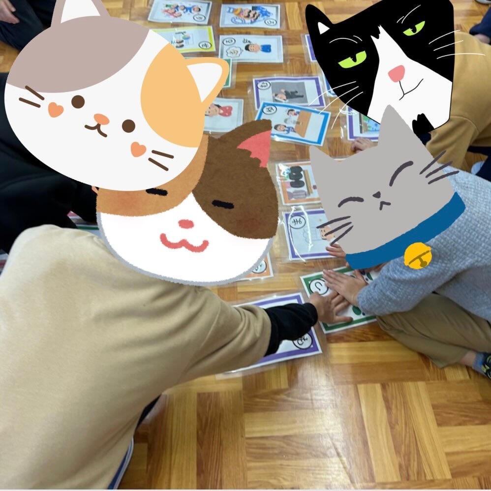 A4サイズの大きな“ネクストかるた”は大盛り上がりで、身体を動かしながら笑顔いっぱいの時間になりました😸